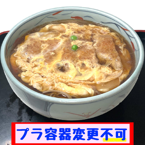 温かいそば・うどんの上にカツがのっています。
